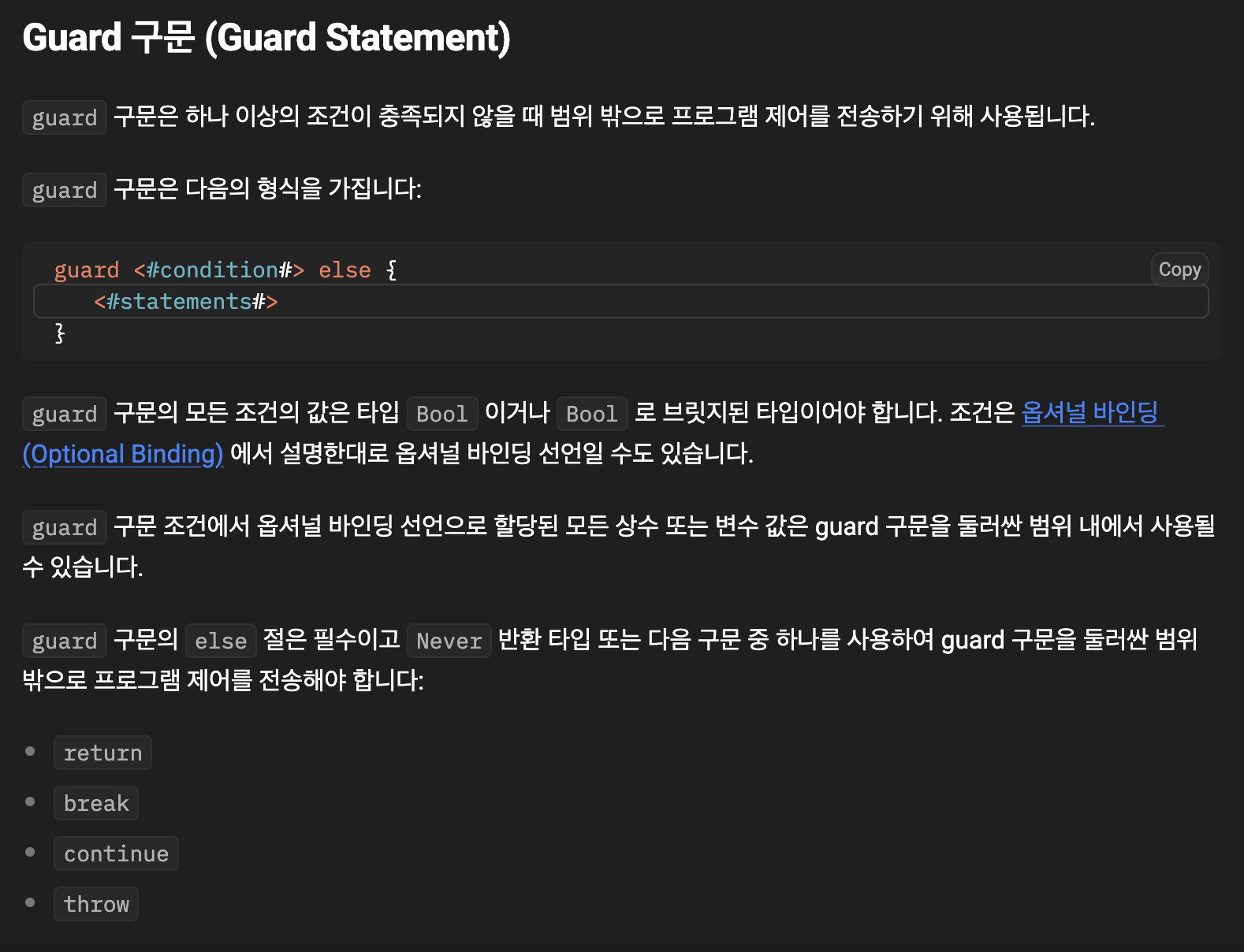 스위프트 권장 사항에도 guard let 사용하길 바란다고 되어 있다