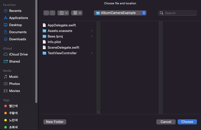 TestViewController 속 ViewControlelr.swift 파일을 클릭 후 Choose를 할게요 !!