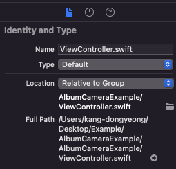 ② 아이덴티티 인스펙터(Identity Inspector) 탭