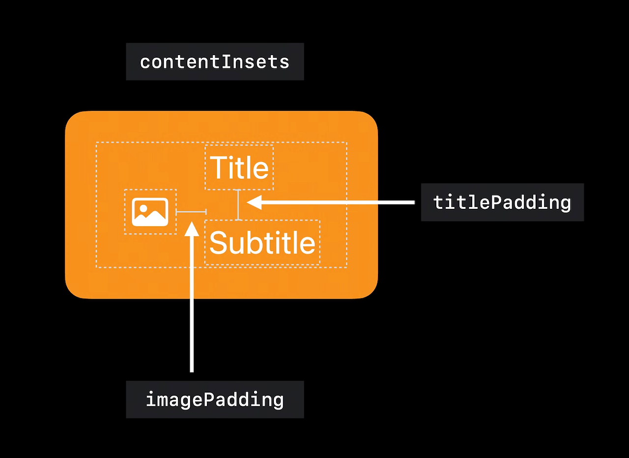 - .contentInsets: Padding from the button’s content area to its bounds.