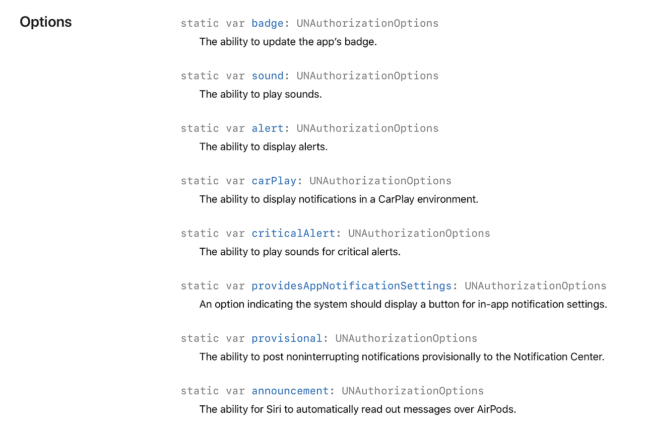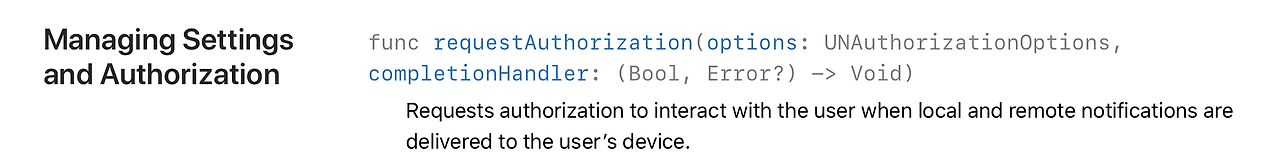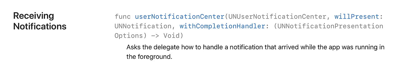 저번에 iOS에서 NFC를 쓰는 방법을 공부하면서 애플개발자 문서를 엉덩이 무겁게 봤는데. 그래서인지 UserNotifications를 하면서 애플 개발자 문서가 더 잘읽히네요. ㅎ