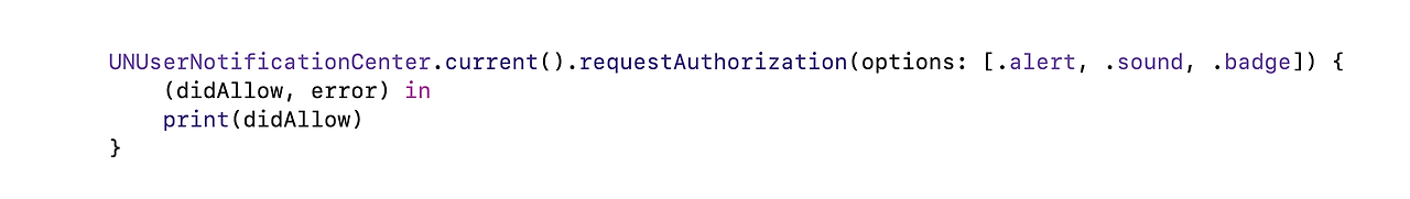 그러면 이제 UNUserNotificationCenter 클래스를 사용할 수 있습니다.