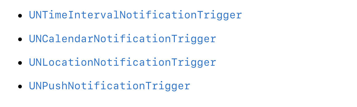 로컬 알림을 언제 발동 시킬지 트리거로 설정합니다. 이 클래스를 인스턴스화 하지 않고