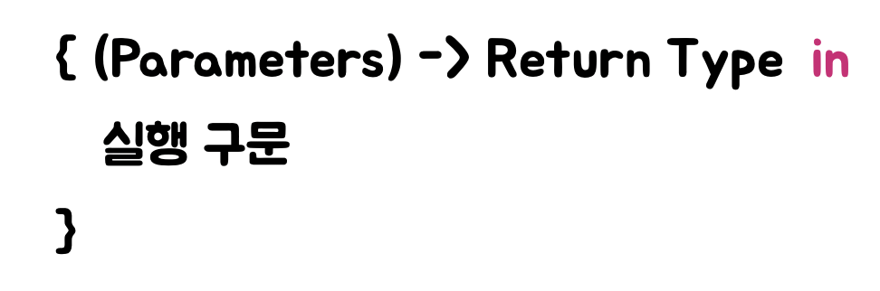 익명 함수인 만큼 func이란 키워드를 쓰지 않음!!!!!
