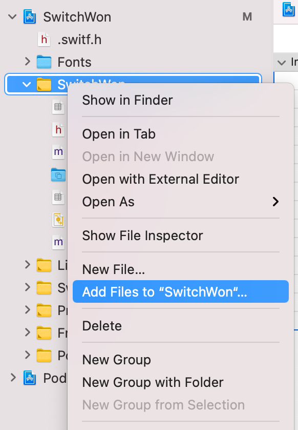xcode에서 위의 그림과 같이 직접 해당 파일을 지정해서 추가 해줘야 한다.