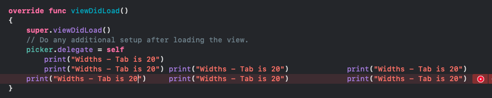 먼저 Widths - Tab / Indent에서 Tab 의 값을 4와 20을 설정하고 두장의 사진을 비교해보겠습니다.