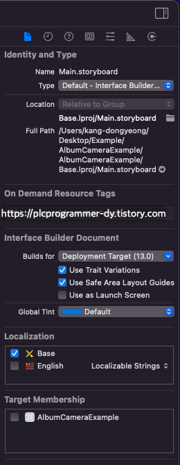 그리고 Target Membership은 해당 File이 어떤 타겟에 포함되어 빌드가 될것인지 선택하는 것입니다.