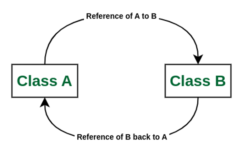 즉 레퍼런스가 둘다 참조가 되는 현상이라 메모리 누수가 발생한다.